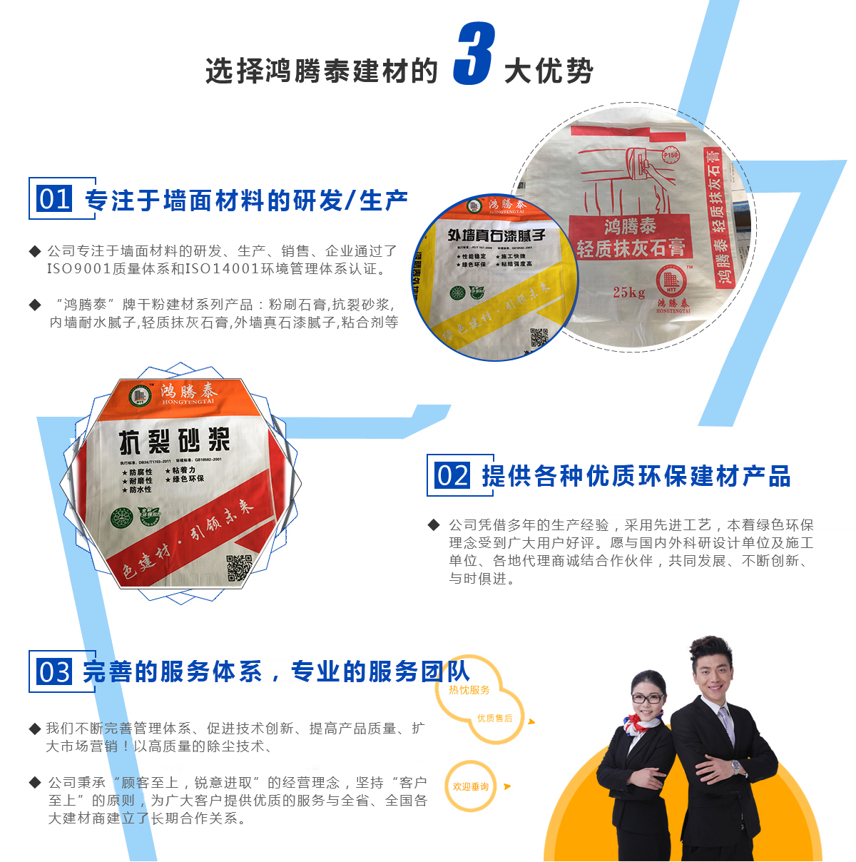 安徽鴻騰泰環(huán)保建材有限公司,坐落于中國科技明珠城合肥市。是一家專業(yè)建筑節(jié)能企業(yè),專注于建筑節(jié)能產(chǎn)品的研發(fā)與生產(chǎn),系統(tǒng)材料的集成及保溫工程的施工。主要銷售安徽浙江|江蘇地區(qū)的輕質(zhì)抹灰石膏,乳膠漆、膩子和水包水涂料以及安徽彈性膩子,質(zhì)量上乘的產(chǎn)品,一直深受著社會各界的好評。它是集科研、生產(chǎn)施工、銷售為一體的實業(yè)公司,且是華東地區(qū)涂料行業(yè)知名企業(yè)。我們一直致力于建筑用抹灰石膏保溫砂漿的開發(fā),生產(chǎn)及推廣事業(yè),多年的專業(yè)發(fā)展造就了成熟的品質(zhì),積累了豐富的經(jīng)驗,均屬技術先進、質(zhì)量上乘的產(chǎn)品,一直深受著社會各界的好評。我公司生產(chǎn)基地擁有寬敞、現(xiàn)代的標準廠房,現(xiàn)有有生產(chǎn)用房10000平米同時擁有2條全自動高速干粉混合生產(chǎn)線和微電腦灌裝機以及2套先進...